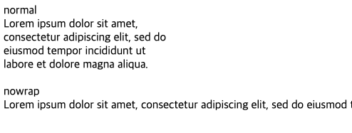 이때 기본값(normal)과 nowrap을 적용해보면 다음과 같은 차이를 보인다.