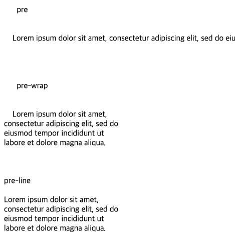 그렇다면 이름이 비슷해보이는 pre, pre-wrap, pre-line은 어떻게 다를까?